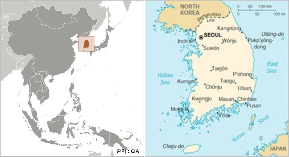 》 기본정보 대륙|동아시아 》 나라개요 한국은 고구려, 백제, 신라의 삼국시대 및 통일 신라시대 등을 거쳐 중세에는 고려가 세워졌으며, 이후 조선이 건립되어 근대까지 이어졌다. 오랜 역사 동안 독립된 왕국으로 있었지만, 잦은 주변 국가의 침입과 간섭을 받아왔다. 1910년부터 1945년까지 35년동안 일본에 점령당했다가 1945년 일본 패망으로 독립하였다.